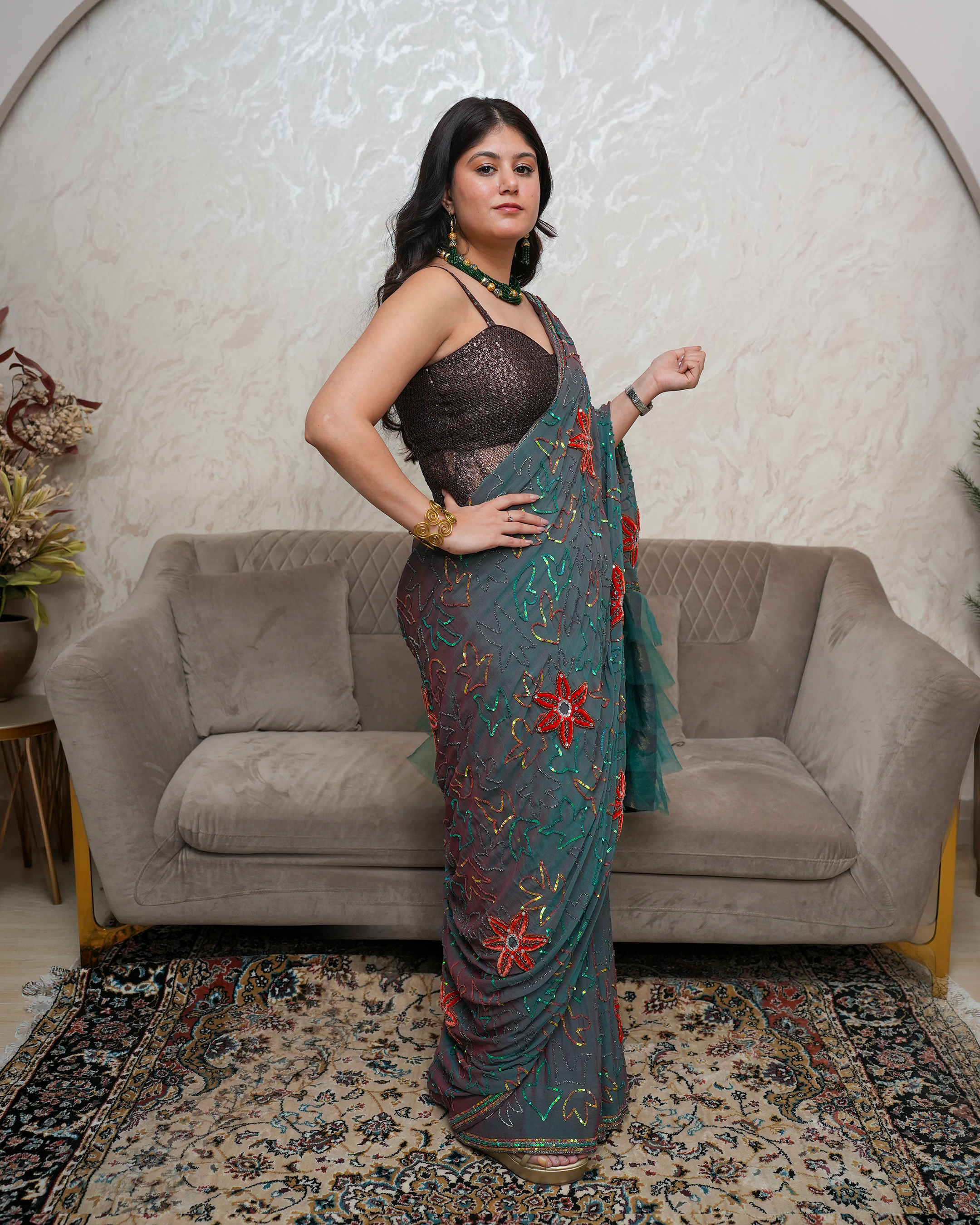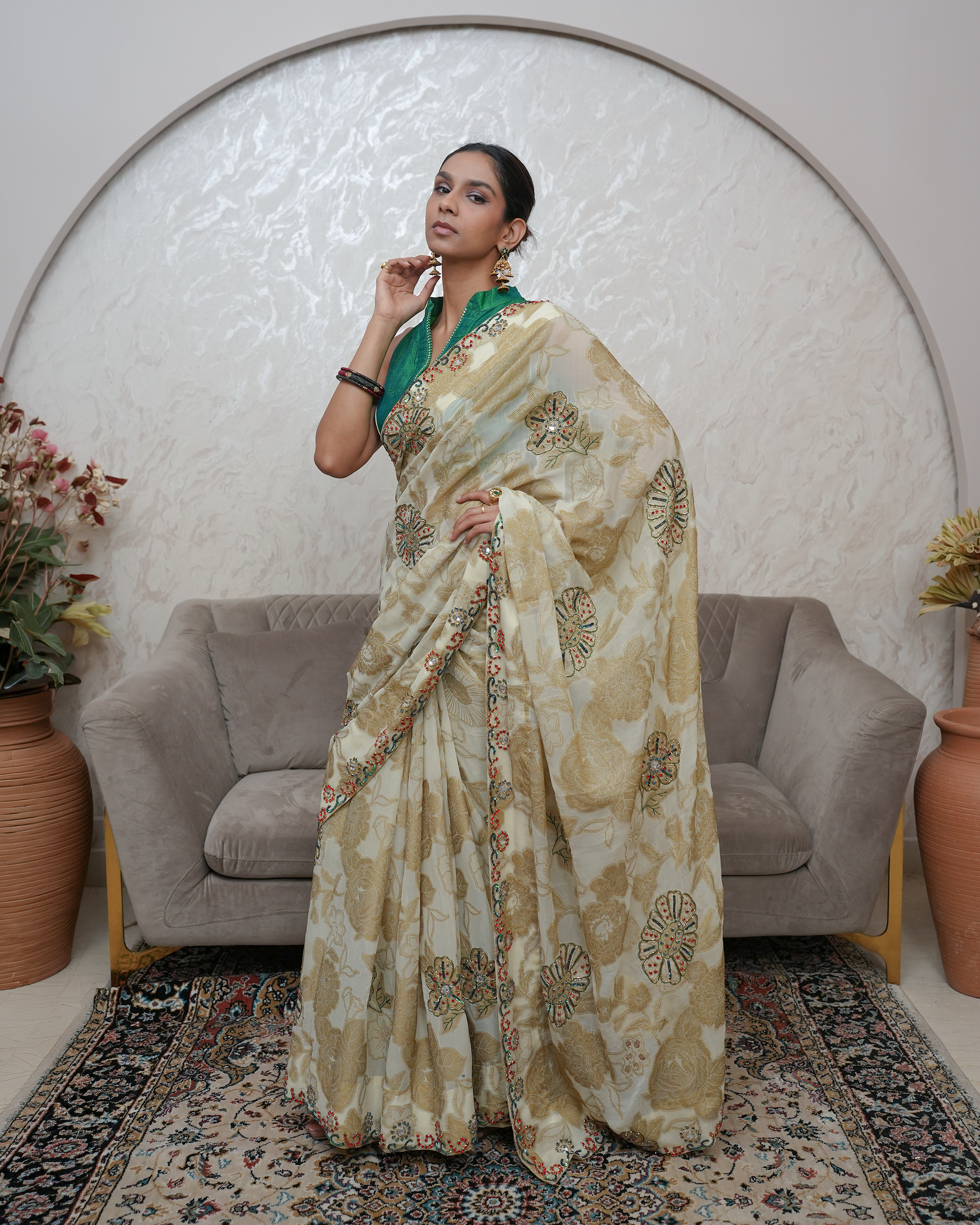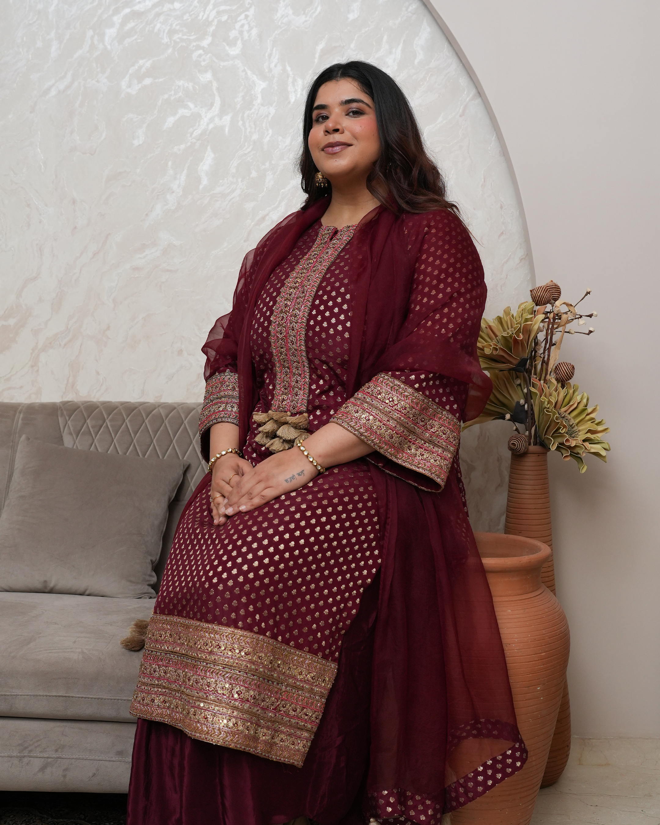 With 15+ years of experience, Sonia Jain designs for women across traditions and trends — from classic Indian wear to modern silhouettes. Known for her keen eye and personal approach, she transforms fabrics into stories while building lasting bonds with her clients.