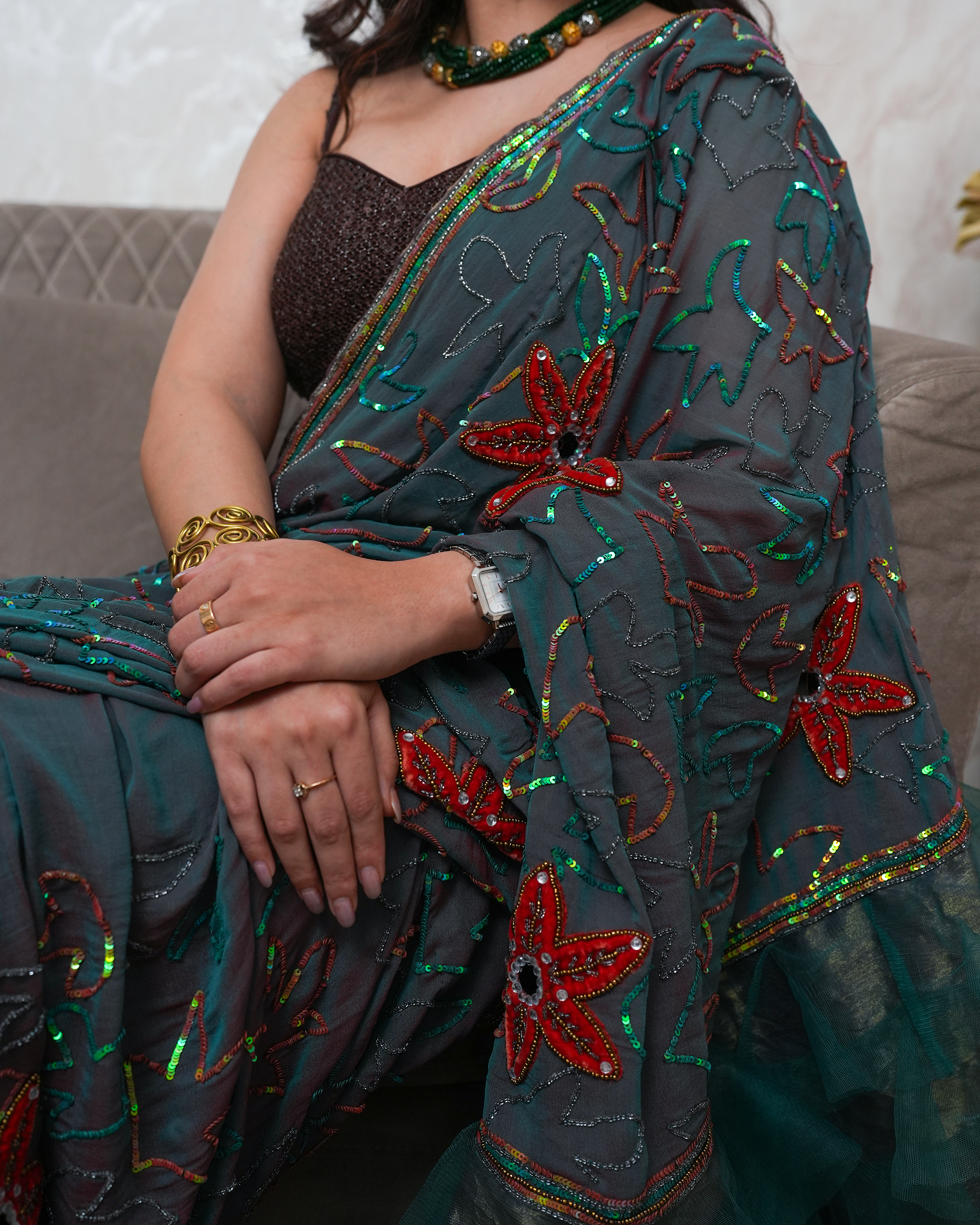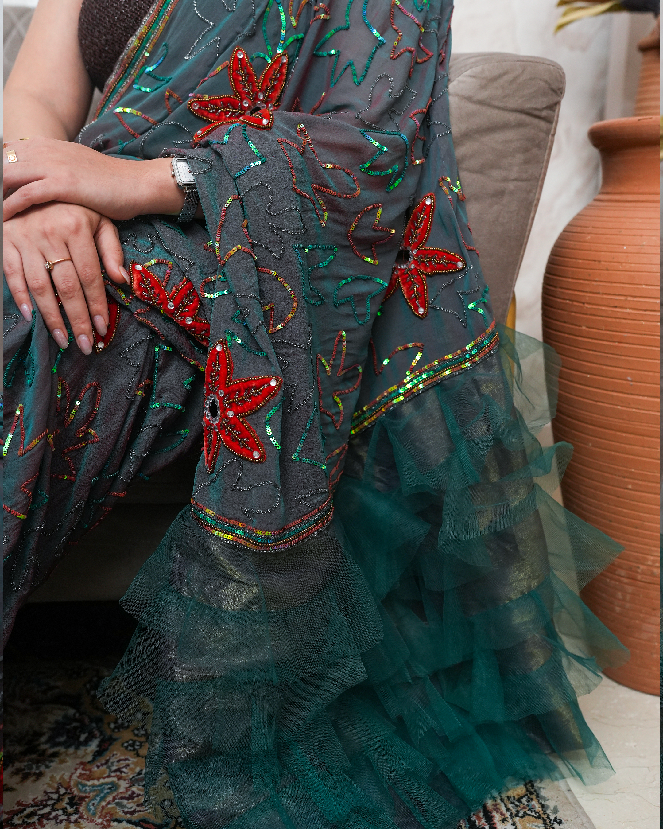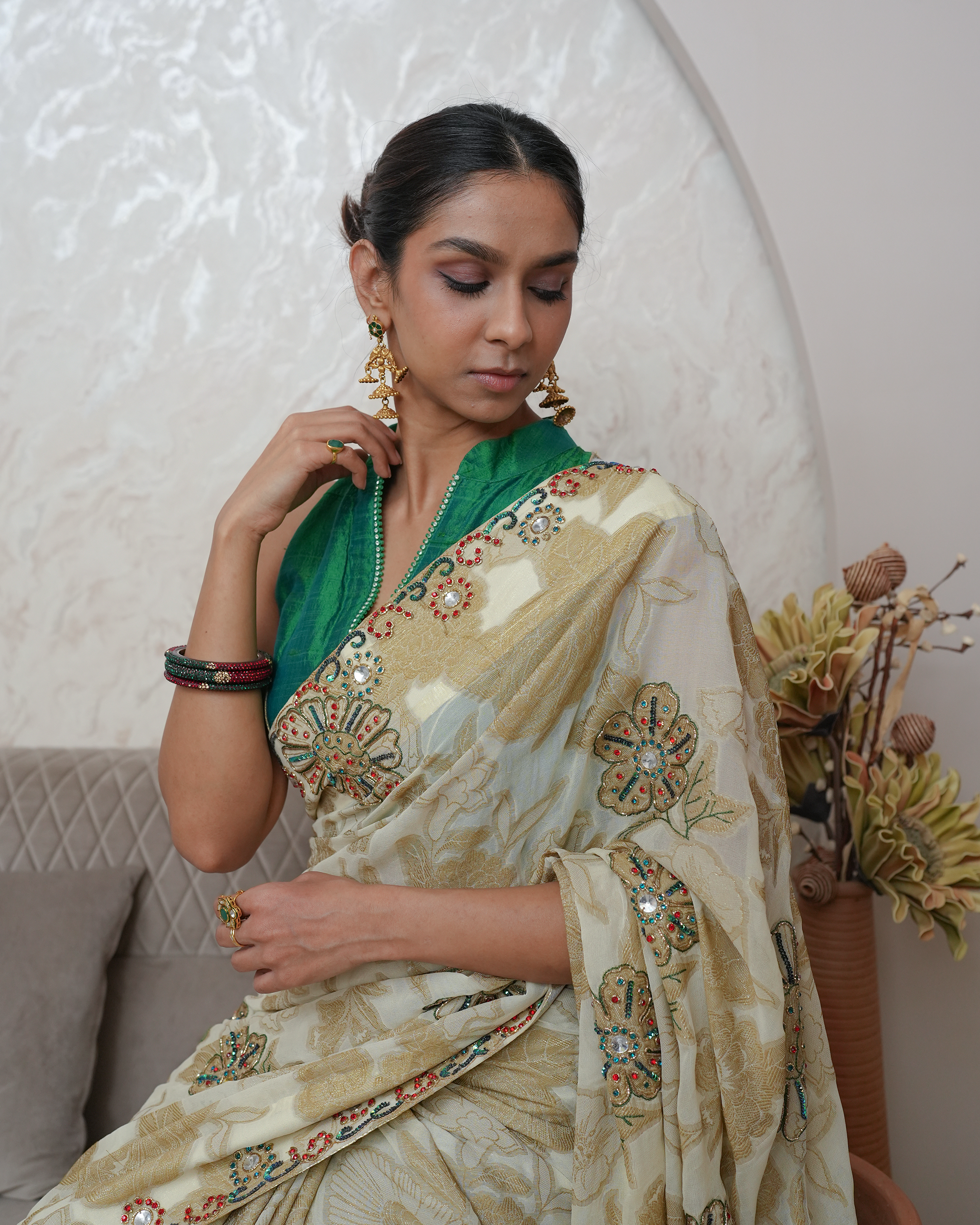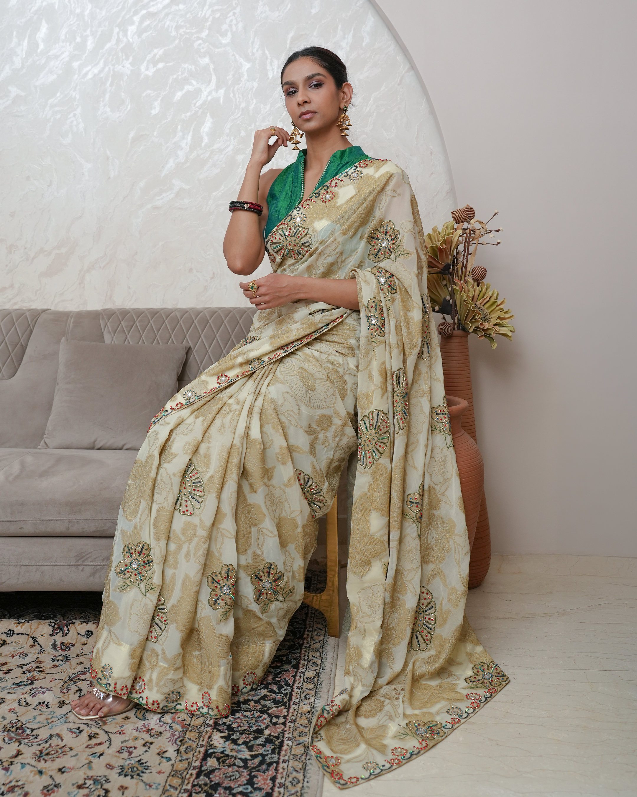With 15+ years of experience, Sonia Jain designs for women across traditions and trends — from classic Indian wear to modern silhouettes. Known for her keen eye and personal approach, she transforms fabrics into stories while building lasting bonds with her clients.