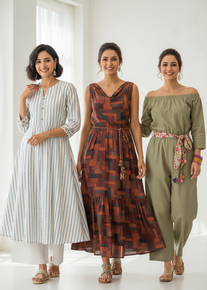 All year round, apparel from made from 100% Authentic Indian Fabrics.