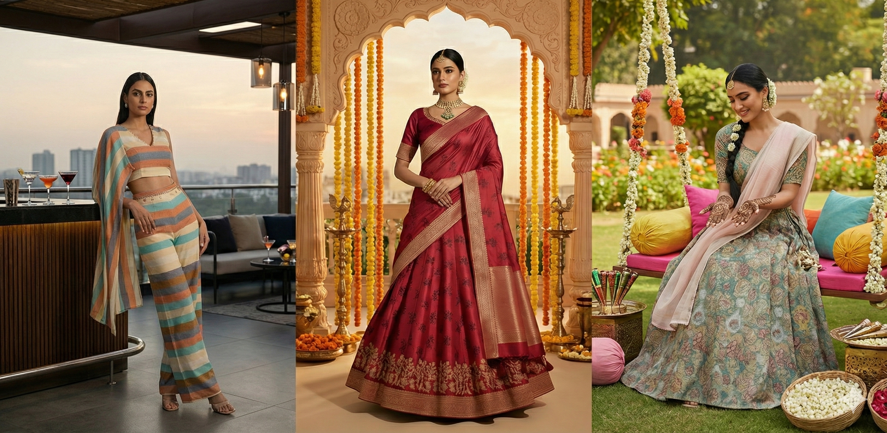 Behind every thread lies a legacy. House of Somarra celebrates India’s heritage through fabrics like Kalamkari, Bandhani, and hand-block prints — transformed into sarees, lehengas, and fusion wear designed for you. Experience the artistry of tradition woven into modern elegance.