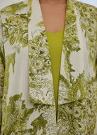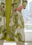 Mayur: Mayur Print Kimono Jacket, Chartreuse Dress & Ivory Pants Set