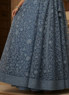 Samaa: Samaa Blue Chikankari-Style Georgette Angrakha Gown