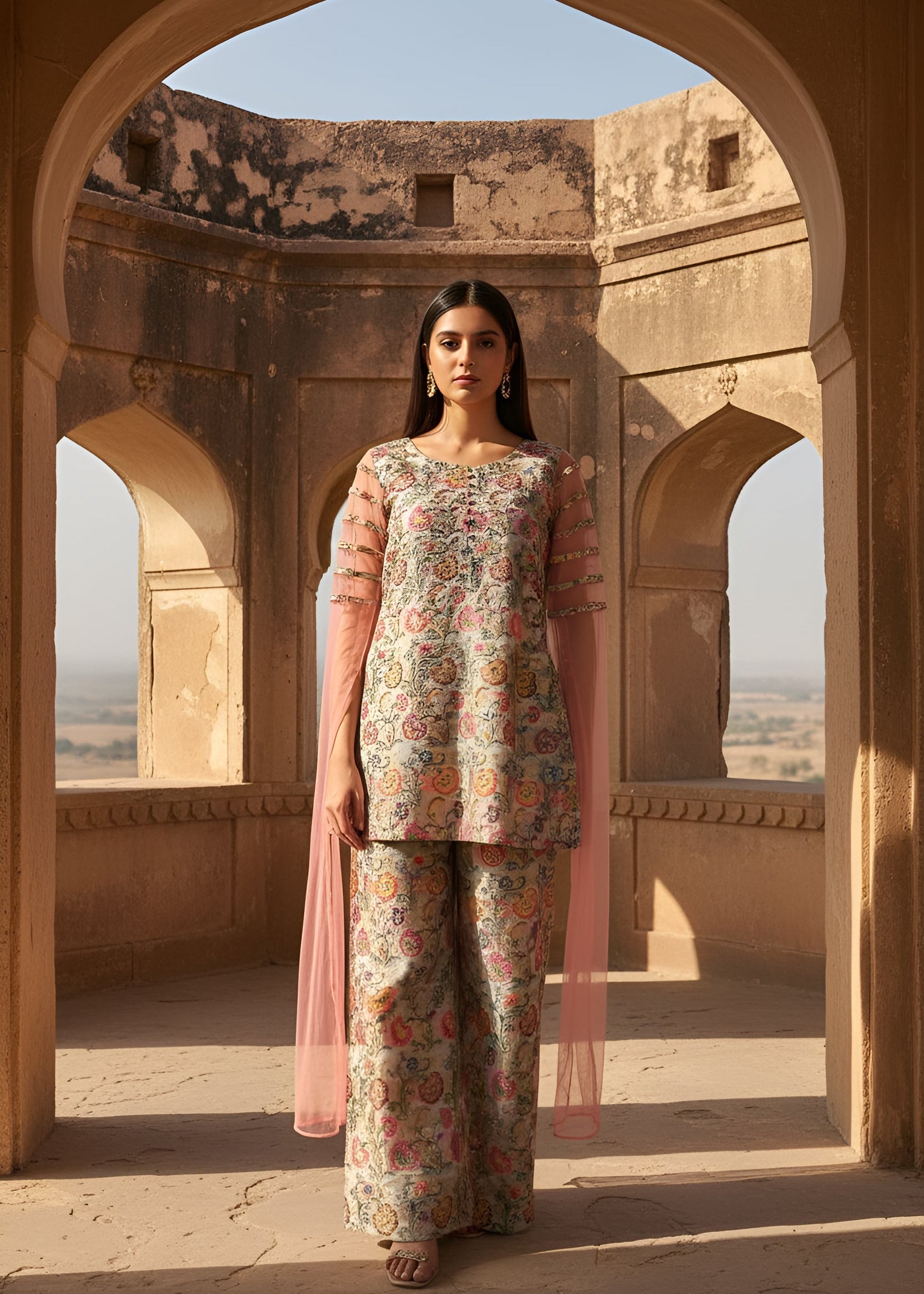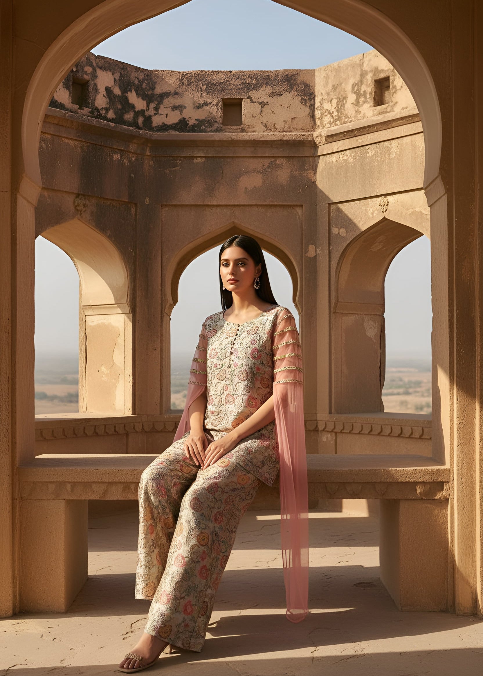 Ziya: Embroidered Statement Co-ord Set with Sheer Detailing