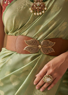 Saanjh: Saanjh Sage Green Silk Saree Set with Belt